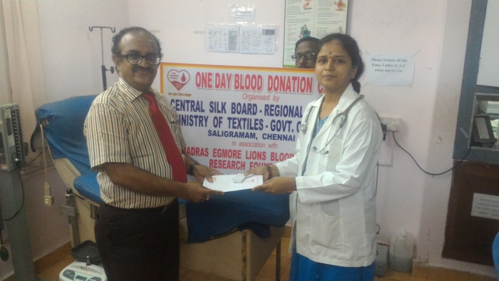 Central Silk Board, Regional Office, Ministry of Textiles, Govt of India, Saligramam conducted one day Blood Donation camp at our Blood Bank